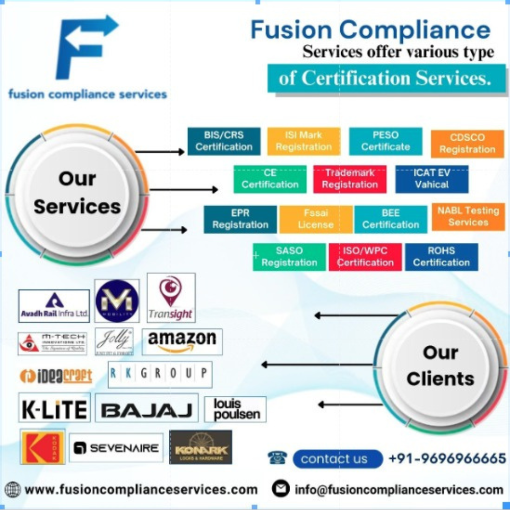 Welcome to Fusion Compliance Services — your trusted partner for comprehensive certification and testing solutions. We specialize in providing NABL Testing Services, PESO Certification, BIS Certification, BIS/ISI Mark FMCS Certification, and CE Certification, ensuring your products meet the highest standards of quality and safety.